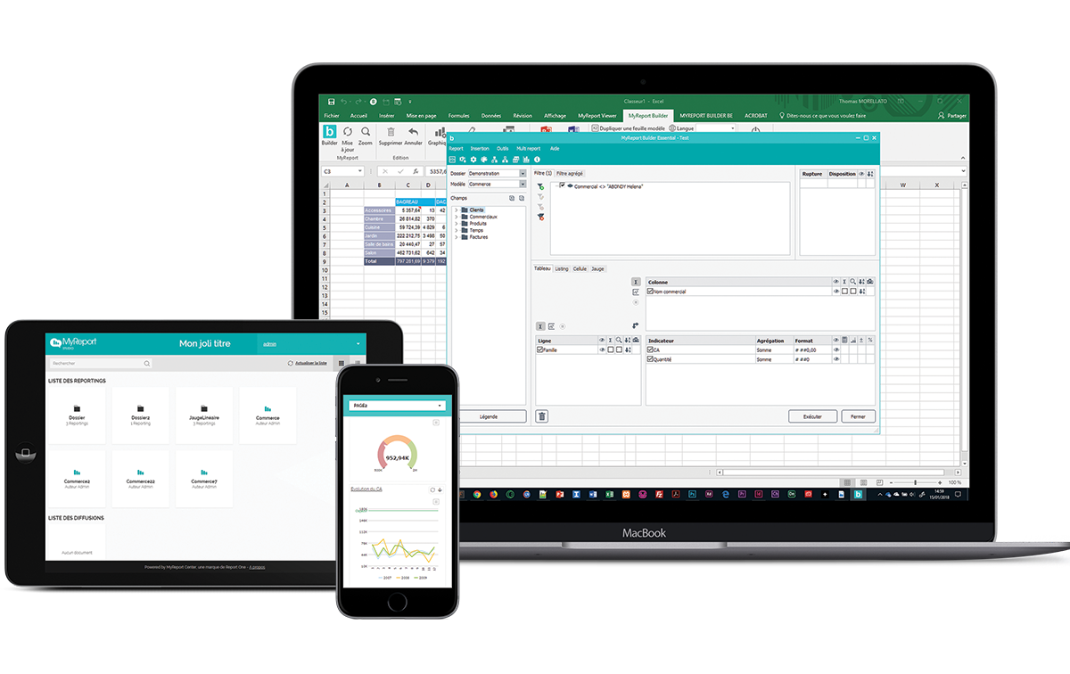 Une fois installé, My Report Freemium vous permettra de réaliser vos premiers tableaux de bord, directement depuis la barre d’outils d’Excel à l’aide du module « Builder ». Une aide en ligne et des exemples de rapports sont mis à votre disposition avec le téléchargement.